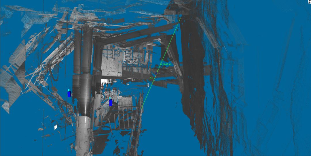 2、扫描的点云数据精度值在1mm左右,能查看煤壁裂隙等情况;