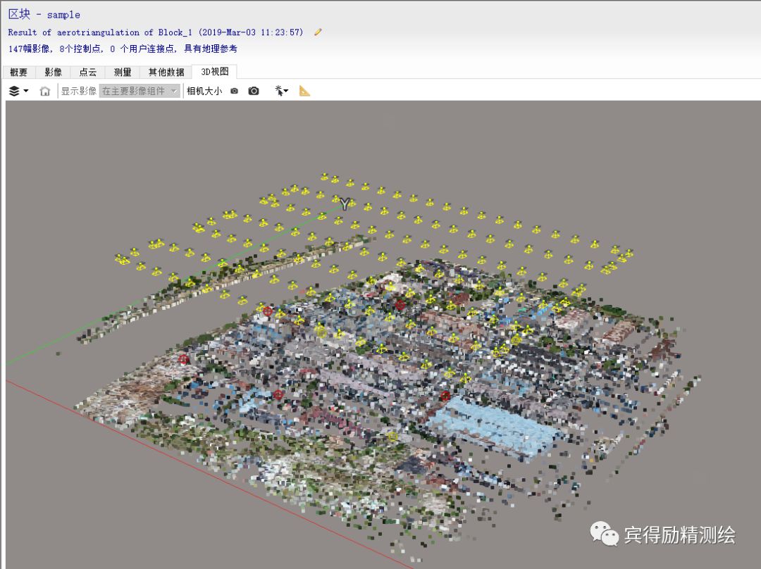 3D视图会显示空三成果,如果POS扭曲或者控制点偏离正确位置很多,在这里也可以很直观的看出来。