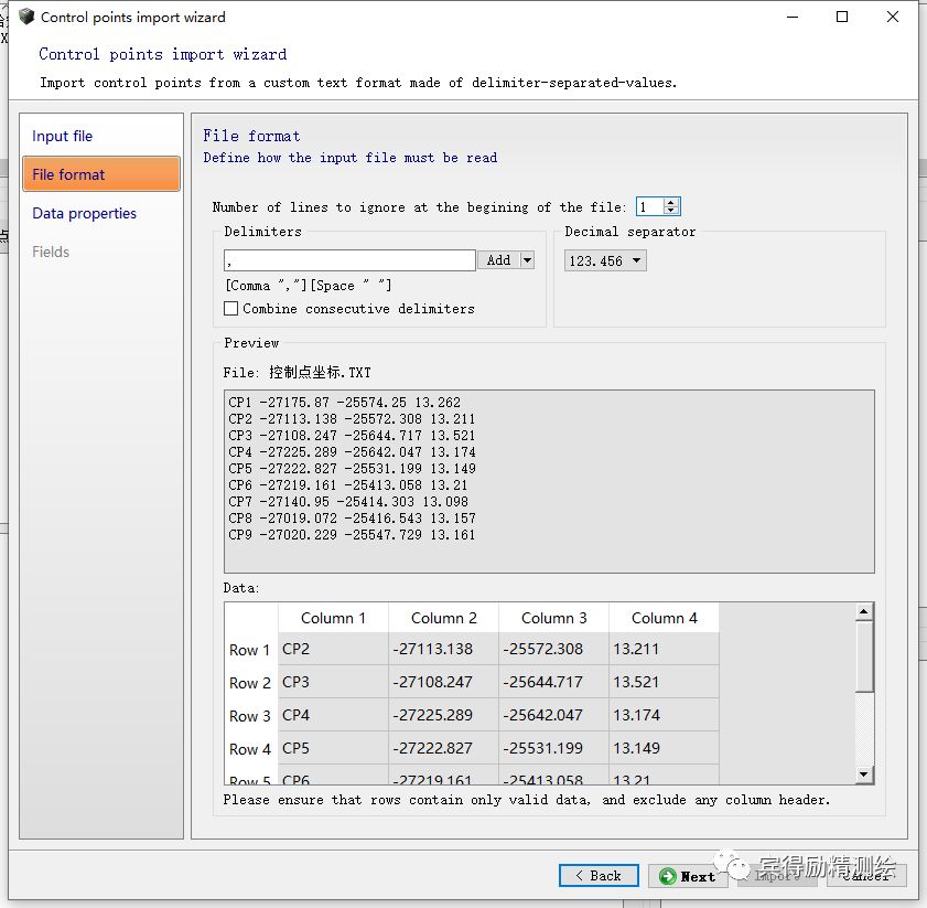 指定控制点文件坐标分隔方式