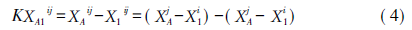 由公式( 2) 可知,KR 代表点位间双差观测值与双差距离的差,也代表各种误差之和。