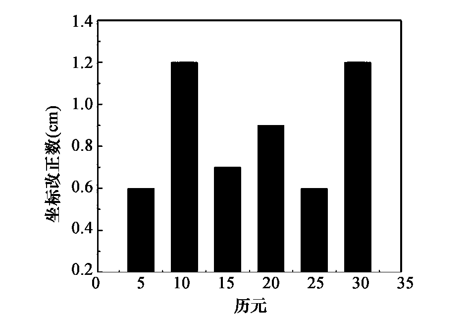 由图3 可知,采用内插算法计算而得的流动站坐标值的偏离误差均较小( 均≤1.2) ,由此说明我们由误差偏离值算法即内插算法,即可以得到较为精确的流动站坐标值,降低各种误差产生的影响。内插算法计算模型可靠,为接下来实验数据的准确度提供了保证。